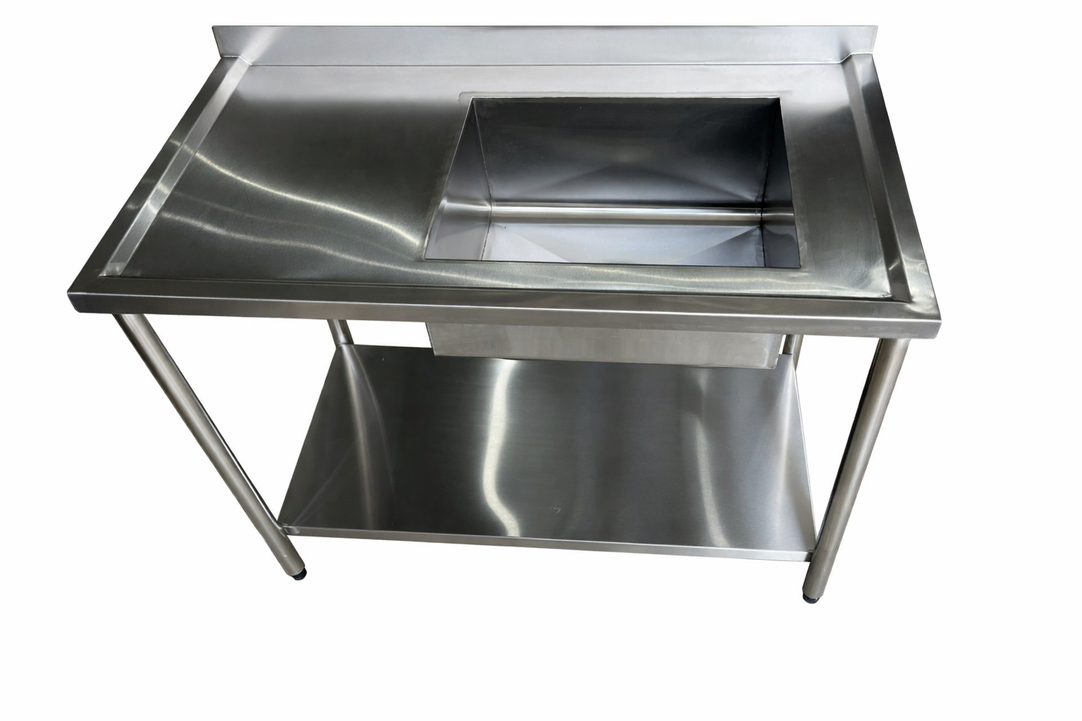 Pia em Aço Inox 430 com uma Cuba - 100x60cm - com uma Prateleira - Cuba Direita